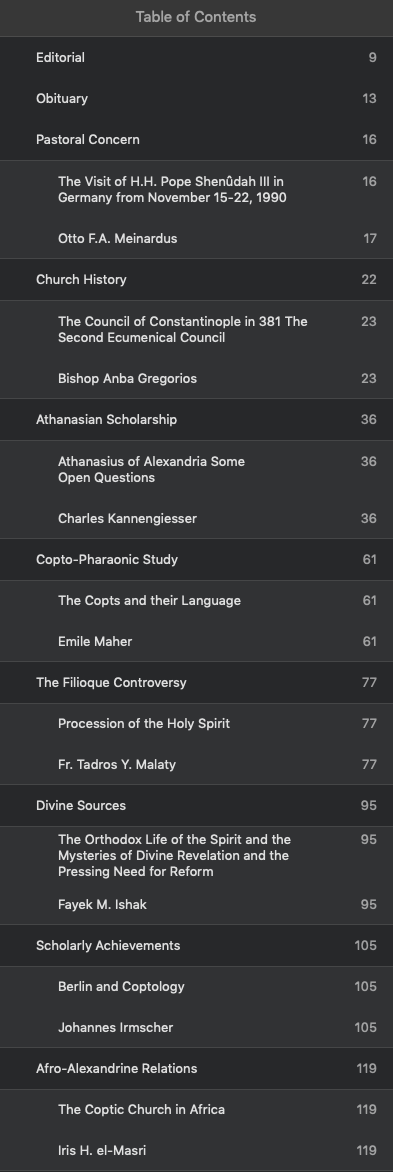 This issue features the theological dialogue between the Eastern and Oriental Orthodox Churches which have been kept apart since the Chalcedonies polemics of 451.